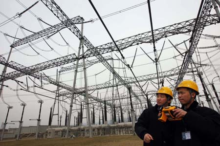 1月26日,在皖電東送重點(diǎn)工程——巢湖500千伏昭關(guān)變電所,供電職工利用紅外線測(cè)試設(shè)備檢測(cè)電網(wǎng)運(yùn)行,確保供電安全。