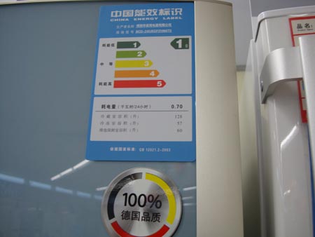 記者日前在北京大中電器牛街店走訪時(shí)看到,電冰箱、洗衣機(jī)、空調(diào)等家電產(chǎn)品都在醒目位置貼上了能效標(biāo)識(shí)。 正在選購(gòu)冰箱的王小姐告訴記者:“我們每天都會(huì)用到冰箱等家電,如果耗電量很大,將會(huì)是一項(xiàng)較大的開(kāi)支。所以我在選購(gòu)時(shí)會(huì)首先考慮它的耗電量,看是不是達(dá)到了高效節(jié)能的水平! 記者在采訪中發(fā)現(xiàn),像王小姐這樣的消費(fèi)者還有很多,他們?cè)谫?gòu)買(mǎi)電器時(shí)很注重觀看產(chǎn)品上的能效標(biāo)識(shí)是不是達(dá)到一級(jí)能效水平,不過(guò)對(duì)于能效標(biāo)識(shí)的具體內(nèi)容和節(jié)能計(jì)算方法卻并不清楚。 據(jù)了解,家電產(chǎn)品的能效標(biāo)識(shí)共分為5級(jí):1級(jí)能效最高,目前市場(chǎng)上產(chǎn)品有少數(shù)能達(dá)到;2級(jí)是節(jié)能評(píng)價(jià)值,產(chǎn)品能效達(dá)到2級(jí)或以上就可以向認(rèn)證機(jī)構(gòu)申請(qǐng)節(jié)能產(chǎn)品;5級(jí)是能效限定值,是市場(chǎng)準(zhǔn)入的門(mén)檻,低于該值的產(chǎn)品將不能在市場(chǎng)上銷(xiāo)售。 伊萊克斯專(zhuān)柜的售貨員表示,現(xiàn)在能效標(biāo)識(shí)已成為消費(fèi)者選購(gòu)的一個(gè)重要指標(biāo),但它的具體計(jì)算比較復(fù)雜。以冰箱為例,它還要考慮到冷藏量的大小以及開(kāi)門(mén)的次數(shù)等等。