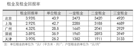2009年1月全國主要城市租金及租金回報率