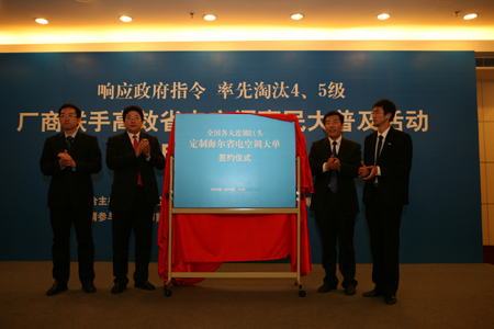 記者日前從在京舉行的“廠商聯(lián)手高效省電空調(diào)惠民大普及活動(dòng)”啟動(dòng)儀式上了解到,以海爾空調(diào)為代表的制造企業(yè)與國美、蘇寧、日日順等流通企業(yè)將積極響應(yīng)國家節(jié)能減排號(hào)召,聯(lián)手在全國范圍內(nèi)展開一場(chǎng)高效省電空調(diào)的惠民大普及活動(dòng)。啟動(dòng)儀式上,國美、蘇寧等主流家電連鎖都不約而同地選擇采購海爾省電空調(diào)。