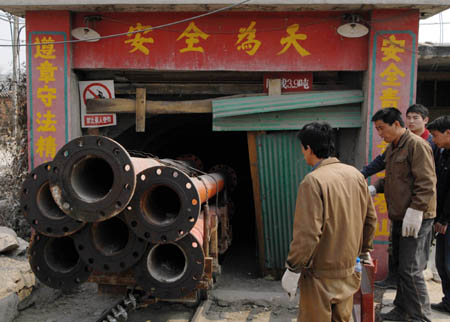 3月29日,在西石門鐵礦北采區(qū),救援人員正準(zhǔn)備將救援設(shè)備運(yùn)往井下。
