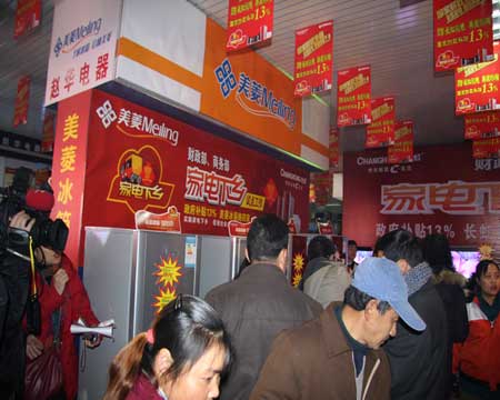 美菱家電下鄉(xiāng)產(chǎn)品銷(xiāo)售火爆。本報(bào)記者:葛如江