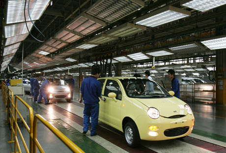 奇瑞汽車有限責任公司員工為剛剛下線的QQ汽車進行檢測。 1997年3月,奇瑞公司在一片沙灘上打下第一根樁。此時,國際汽車業(yè)巨頭已相繼在中國市場布局,家門口的國際競爭烽煙四起,這決定了奇瑞從一出生起,就踏上了一條充滿荊棘之路。 2009年一季度,奇瑞汽車銷售過十萬輛,創(chuàng)造了公司歷史上的最好業(yè)績,同時還創(chuàng)造了建廠12年累計銷售150萬輛的奇跡,這在世界汽車發(fā)展史上都是少見的。新華社記者 王雷 攝