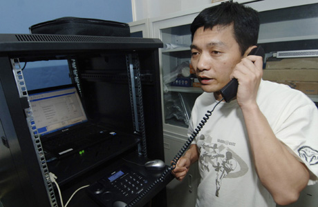 5月4日,中國科大研究小組成員陳騰云在進(jìn)行量子電話模擬試驗(yàn)。 將量子通信技術(shù)運(yùn)用到電話網(wǎng)絡(luò),建立起多個(gè)電話用戶之間真正安全、不怕竊聽的“量子級”通話方式。記者從中國科學(xué)技術(shù)大學(xué)獲悉,日前,該校潘建偉研究小組在實(shí)用化量子通信方面取得了重大進(jìn)展,在合肥建成世界上首個(gè)光量子電話網(wǎng),這標(biāo)志著絕對安全的量子通信由實(shí)驗(yàn)室走進(jìn)了日常生活。