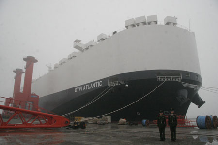 由威海三進(jìn)船業(yè)有限公司為一家挪威公司建造的“大西洋”號(hào)大型汽車運(yùn)輸船于5月11日早上6時(shí)進(jìn)行首航,開(kāi)往韓國(guó)仁川港。這艘汽車運(yùn)輸船船長(zhǎng)199.90米,寬32.26米,高34.55米,可裝載6700輛汽車。