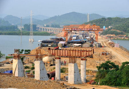 6月15日,彭湖高速公路控制工程河灣大橋進(jìn)入橋梁鋪架階段。 江西彭澤至湖口高速公路一期工程主線全長52.106公里,投資估算16.1億元,自2008年10月開工以來,已完成投資4.4億元,路基完成工作量近90%。作為國家高速公路濟(jì)南至廣州和杭州至瑞麗公路間的加密高速公路,公路建成后,將把江西九江與安徽安慶、銅陵及江蘇南京有機(jī)地連成一體,對于發(fā)揮長江港口城市的樞紐運(yùn)輸將起到重要作用。