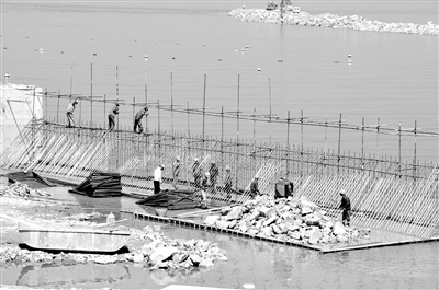 福建福清核電站3000噸級(jí)碼頭主體工程施工場(chǎng)景。 |