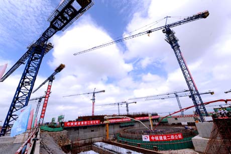 福建福清核電站2號機(jī)組核島反應(yīng)堆廠房施工工地(6月17日攝)。