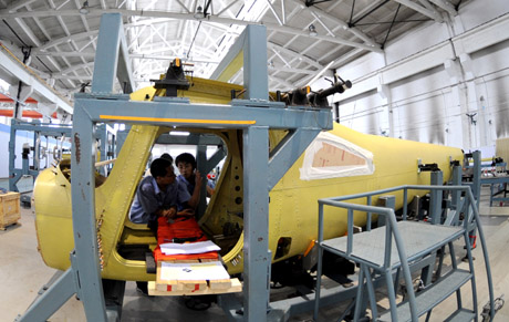 這是7月13日拍攝的組裝中的L162活塞式輕型運動飛機。 中航工業(yè)沈陽飛機工業(yè)(集團)有限公司(簡稱沈飛公司)和美國賽斯納飛機公司合作生產(chǎn)的L162活塞式輕型運動飛機將于年內(nèi)在沈陽實現(xiàn)首飛。據(jù)該公司介紹,目前項目正處于飛機大部件組裝階段。 這款L162輕型運動飛機主要用于飛行培訓(xùn)、私人娛樂飛行。美方承擔(dān)該飛機的設(shè)計,沈飛公司負責(zé)飛機零組件制造、裝配和試飛。