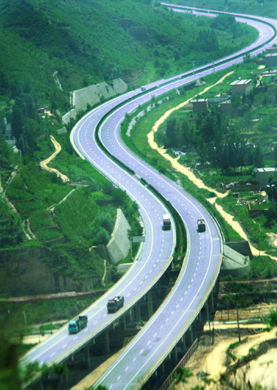 通過延安的包茂高速公路被綠色包圍(2009年7月29日攝)。