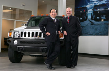 10月9日,美國通用汽車公司已就出售其悍馬品牌事宜與中國四川騰中重工有限公司簽署最終協(xié)議。這是10月8日在美國密歇根州紹斯菲爾德,悍馬公司首席執(zhí)行官泰勒(右)和四川騰中重工機械有限公司總經(jīng)理楊毅在一輛悍馬汽車前合影。新華社/法新 |