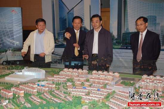 周強(qiáng)省長一行參觀湖南日報(bào)報(bào)業(yè)集團(tuán)報(bào)業(yè)文化城模型