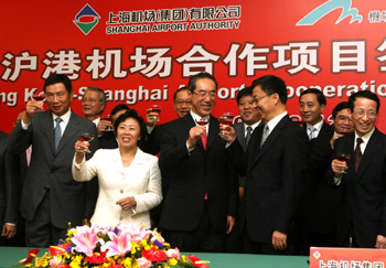 10月12日,上海機場(集團)有限公司與香港機場管理局在上海舉行滬港機場合作項目簽約儀式,雙方合資成立上海滬港機場管理有限公司,管理上海機場集團所屬的虹橋機場的東、西兩個航站樓、虹橋綜合交通樞紐東交通中心與旅客流程相關區(qū)域,以及航站樓商業(yè)零售業(yè)務。