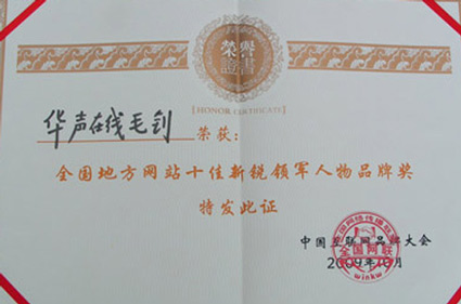 全國(guó)地方網(wǎng)站十佳新銳領(lǐng)軍人物品牌獎(jiǎng)證書(shū)