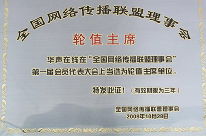 華聲在線(xiàn)“輪值主席”證書(shū)