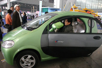 10月30日,在南京舉行的名特優(yōu)新產(chǎn)品展銷會上,觀眾在觀看現(xiàn)場展銷的一款最高時速70公里、可連續(xù)行駛120公里的電動汽車。新華社發(fā)(董金林攝) |