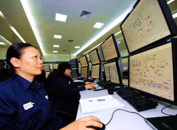 福建煉油乙烯一體化項(xiàng)目中控室的技術(shù)人員正在工作。照片均由本報(bào)記者 張國(guó)俊