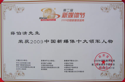 華聲在線董事長(zhǎng)薛伯清獲評(píng)“2009中國(guó)新媒體十大領(lǐng)軍人物”