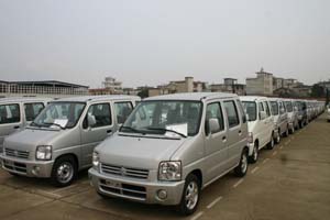 新下線的昌河汽車整裝待發(fā)。 |