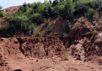 平南縣六陳鎮(zhèn)六合村,一非法稀土礦開采點造成嚴重的水土流失。 |