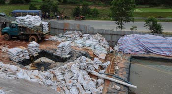 非法開礦者運來的硫酸銨等原料。新華社記者 吳小康