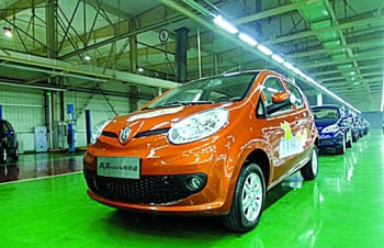 圖為奔奔MINI純電動(dòng)車下線。資料照片 |