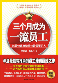 新書《三個月成為一流員工》讓我感受到又一次的強烈震撼,半年前我出版了同類題材的書——《總裁的第一份工作》,仔細(xì)對照,從歸納能力、言簡意賅能力、為讀者設(shè)身處地的移情能,可看出我寫作之稚嫩及吳甘霖寫作之老辣。以下摘自《三個月成為一流員工》: