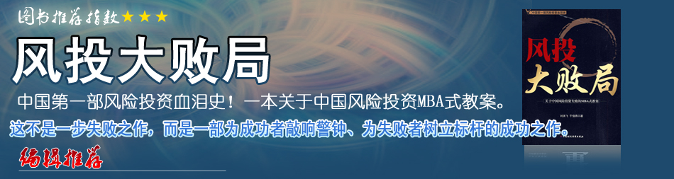| 隨著時代的進步,經濟的發(fā)展,風險投資已開始在中國遍地開花。許許多多優(yōu)秀的企業(yè)都離不開風投,然后并不是所有的風投都是成功的,失敗的卻也不少。本書講述了亞信、UT斯達康、億唐、8848、港灣網絡、Web2.0、PPG等知名企業(yè)通過風險投資曾一度走向輝煌,最終沒落的全過程。揭示了風投與企業(yè)之間微妙的關系和不為人知的內幕。七個風投失敗的案例,為投資者指明了哪些是暗礁,哪些是雷區(qū)。同時,也為企業(yè)家敲響了警鐘,告訴他們在與資本合作時,哪些游戲規(guī)則必須遵守,哪些游戲規(guī)則可以越界。在風險投資被越來越多的企業(yè)追捧、資本經濟飛速發(fā)展的今天,該書起到了一面鏡子的作用,能夠讓風投投準企業(yè)的同時,也能讓企業(yè)找準風投。只有如此,才能達到雙贏。 |