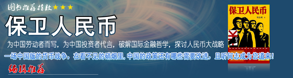 | 我對(duì)于中國(guó)經(jīng)濟(jì)一向樂(lè)觀。金融危機(jī)以來(lái),我發(fā)表了一系列文章抨擊市場(chǎng)上財(cái)經(jīng)術(shù)士的所謂“危機(jī)論”。當(dāng)我第一眼看到何志成先生的新書《保衛(wèi)人民幣》時(shí),不禁被書名驚詫了,難道他也被某些悲觀論調(diào)嚇倒了?…[詳細(xì)] |