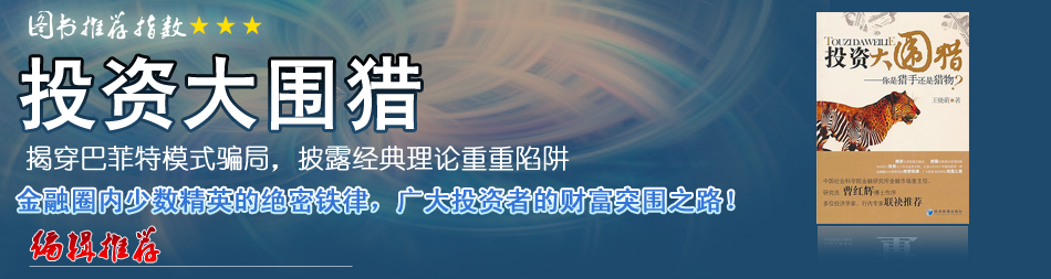 “叢林法則”,即在叢林之中,資源有限,弱肉強(qiáng)食,只有強(qiáng)者才能活下來。《投資大圍獵——你是獵手還是獵物?》中的“叢林法則”就是,想生存下來的唯一辦法是離開叢林!任何技巧的提高、經(jīng)典理論的學(xué)習(xí)都無法擺脫獵物的命運(yùn),除非脫離“叢林”,用歷史的高度俯視投資的問題。
