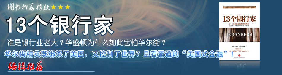 | 看了這本書,感覺題目有些危言聳聽,不過書的內(nèi)容還算中規(guī)中矩。書中提到的13個(gè)銀行家實(shí)際上是美國金融市場的一個(gè)縮影。 |