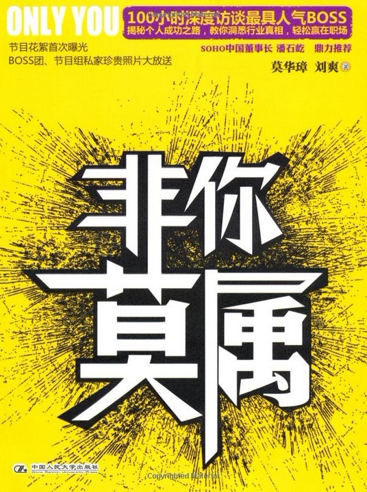 由國內(nèi)知名的財經(jīng)圖書出版商湛廬文化策劃、中國人民大學出版社出版的同名新書《非你莫屬》,是節(jié)目內(nèi)容的延伸與深化。書作者分別完成了與《非你莫屬》節(jié)目十位嘉賓(BOSS)的深度對話,不僅敘述了十位商界精英的個人成長歷程、創(chuàng)業(yè)史或職場打拼故事,而且還引導受訪者闡述了對新入職者、職場瓶頸期、創(chuàng)業(yè)者若干常見疑難的看法。