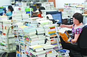 20日下午,工作人員在新首圖一層采編區(qū)內(nèi)對購進(jìn)的各種新書進(jìn)行信息采集和分類,為接下來的上架工作做準(zhǔn)備。孫戉攝 |