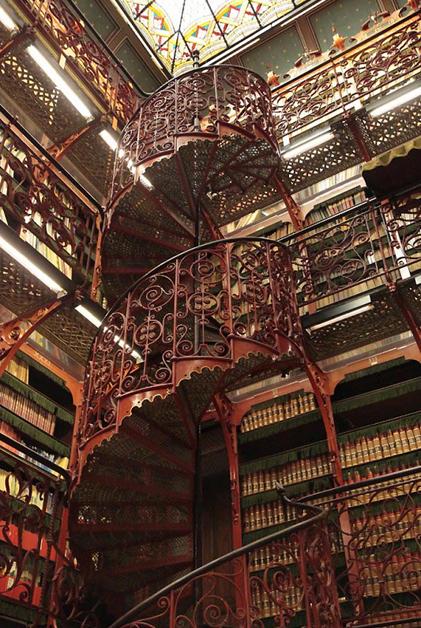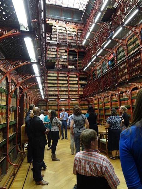 Peters)在19世紀(jì)末建造完成,因?yàn)楫?dāng)時(shí)還有沒有電燈,為了減少館內(nèi)蠟燭和煤氣燈的使用以確保館藏文獻(xiàn)安全,大廈的天花板被修建成一個(gè)巨大的玻璃穹頂,好讓光線能透過中庭及各層鏤空雕刻的地板充分地照亮整座4層樓的圖書館。