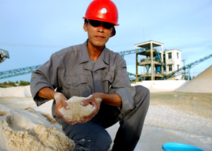 攝) | 在海南島東方市有一個(gè)不為人熟知的八所石英砂礦,舉世矚目的2008年北京奧運(yùn)會,卻將這個(gè)小小的砂礦和相距數(shù)千公里的首都北京緊緊地連在了一起。 憑借其產(chǎn)品的出色品質(zhì),八所石英砂礦在激烈的奧運(yùn)“淘沙”之戰(zhàn)中脫穎而出,得到北京奧組委和國際排聯(lián)的認(rèn)可,并將承擔(dān)北京奧運(yùn)會1.7萬噸沙灘排球場地用沙的生產(chǎn)任務(wù)。