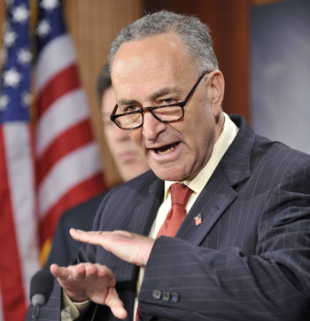 3月16日,在美國首都華盛頓國會山舉行的記者會上,美國國會參議員查爾斯·舒默就人民幣匯率講話。新華社發(fā) |