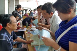 9月1日至3日,甘肅省2007年公務(wù)員招考進(jìn)行報名。本次考錄采取現(xiàn)場報名方式,整個招考工作將在2008年1月完成。 新華社發(fā)(楊昕