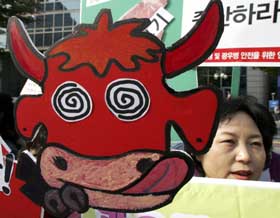 韓國民眾抗議恢復(fù)進(jìn)口美國牛肉