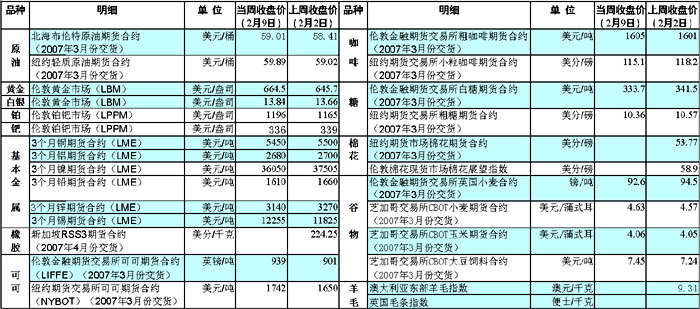 市場人士認為,西非最近的干熱天氣可能會影響可可產量,引起西非供應短缺,可可價格升至7個多月來最高水平。在國際糖組織(ISO)調高了2007年的供應預測后,倫敦和紐約兩地的糖價均有所下滑,紐約市場的糖價跌至4個半月來最低點。由于美國農業(yè)部調低了2006至2007年度全球小麥的庫存量,芝加哥市場的谷物類價格上揚。
