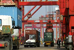 繁忙的上?诎丁=(jīng)濟(jì)參考報(bào)資料照片 | 北京大學(xué)中國國民經(jīng)濟(jì)核算與經(jīng)濟(jì)增長研究中心3日公布的《中國經(jīng)濟(jì)增長報(bào)告(2007)——和諧社會(huì)與可持續(xù)發(fā)展》提出,進(jìn)入本世紀(jì)以來,隨著中國經(jīng)濟(jì)增長和外向型經(jīng)濟(jì)的發(fā)展,中國在國際貿(mào)易中的份額不斷擴(kuò)大,加上歐盟的影響日益顯著,在國際經(jīng)濟(jì)秩序中,目前已經(jīng)形成了以美國、歐盟、中國和日本為主導(dǎo)的新的經(jīng)濟(jì)格局。 報(bào)告通過對2000年至2005年世界貿(mào)易中10個(gè)主要國家和地區(qū)的進(jìn)出口排序情況進(jìn)行對比分析后指出,除了中國大陸以外,5年來能列入前10名的都屬于發(fā)達(dá)國家或地區(qū),人均國民生產(chǎn)總值(GDP)都在兩萬美元以上。正是由于中國對外貿(mào)易的迅速發(fā)展,才打破了由發(fā)達(dá)國家或地區(qū)主宰世界貿(mào)易的格局。2000年,中國在全球貿(mào)易中的排名第七,到2005年已經(jīng)超過日本,排名世界第三。隨著加速工業(yè)化的進(jìn)程和外向型經(jīng)濟(jì)的迅速發(fā)展,中國作為世界上新的制造業(yè)中心的地位已經(jīng)確立。 報(bào)告研究表明,2005年,德國已經(jīng)超過美國成為世界第一出口大國,占全球出口貿(mào)易的比重上升為9.3%,比中國的7.3%高出兩個(gè)百分點(diǎn)。美國的進(jìn)出口總額仍在世界上占最大比重(12.4%),但影響其規(guī)模的主要因素是巨額貿(mào)易逆差,其進(jìn)口貿(mào)易占全球的比重為16.1%,出口僅占8.7%。世界10大主要出口國家和地區(qū)占全球貿(mào)易的比重達(dá)50%以上,其中大多數(shù)為歐洲國家。歐洲的經(jīng)濟(jì)一體化進(jìn)程,使其在世界貿(mào)易中的影響明顯擴(kuò)大。數(shù)據(jù)顯示,目前以美國、歐盟、中國和日本為主導(dǎo)的新的世界經(jīng)濟(jì)格局已經(jīng)形成。 報(bào)告指出,改革開放以來,中國對外貿(mào)易的發(fā)展顯著快于經(jīng)濟(jì)增長,中國的進(jìn)出口總額占GDP的比重不斷提高,從1978年的9.74%、2001年的38.47%,提高到2005年的63.86%,平均每年增加約兩個(gè)百分點(diǎn)。外貿(mào)依存度的增加,說明了中國對外貿(mào)易總量的增長速度快于GDP的增長,由此擴(kuò)大了對外貿(mào)易對中國經(jīng)濟(jì)活動(dòng)的影響。 報(bào)告分析說,中國外貿(mào)依存度的提高是和加速的工業(yè)化進(jìn)程及加入WTO相聯(lián)系的,反映了在全球經(jīng)濟(jì)一體化的背景下,中國經(jīng)濟(jì)和世界經(jīng)濟(jì)更加深入的融合。從橫向比較看,中國的外貿(mào)依存度明顯的高于美國和日本,也高于歐洲的英國、法國和意大利等國家,與世界第二貿(mào)易大國德國及西班牙、加拿大、韓國等相似,所以并不能簡單地從外貿(mào)依存度的具體數(shù)值上判斷中國的外向型經(jīng)濟(jì)規(guī)模是否適度。但是通過對中國外貿(mào)依存度的動(dòng)態(tài)比較分析,我國至少應(yīng)重視兩方面的問題:一是作為大國經(jīng)濟(jì),這么高的依存度對中國的經(jīng)濟(jì)安全和可持續(xù)發(fā)展是否會(huì)產(chǎn)生一定的負(fù)面影響。雖然一些發(fā)達(dá)或新興工業(yè)化國家和地區(qū)的外貿(mào)依存度也比較高,但它們的外貿(mào)依存度通常是比較穩(wěn)定的,而中國的外貿(mào)依存度在近年來卻是迅速變化的。二是隨著外貿(mào)依存度的變化,應(yīng)采取一些防范風(fēng)險(xiǎn)的有效措施。