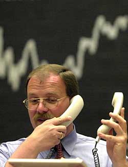 | 圖為一名交易商在法蘭克福股票交易所的DAX指數(shù)走勢(shì)圖前接電話。本報(bào)資料照片 | 德國股市關(guān)注中國概念股