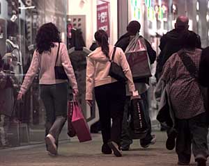 | 圖為幾位美國新澤西州的居民購物后離開商場。分析人士認(rèn)為,美國次級抵押貸款危機(jī)對約占美國國內(nèi)生產(chǎn)總值2/3的個(gè)人消費(fèi)開支的影響不是很大。本報(bào)資料照片 | 美國經(jīng)濟(jì)對樓市依賴度有限