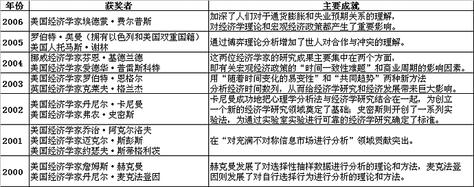近年諾貝爾經(jīng)濟(jì)學(xué)獎(jiǎng)得主及成就
