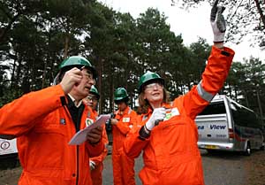 | 威奇法姆油田環(huán)境和通信主管Suzie Baverstock(右)向本報記者吳定保(左)介紹情況。本報記者 謝秀棟