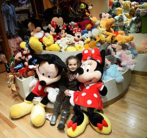 | 18日,在美國紐約曼哈頓的迪斯尼世界,一名來自荷蘭的小女孩在米老鼠毛絨玩具堆中玩耍。她身邊的大號米老鼠娃娃產(chǎn)自中國,每個售價100美元。在紐約迪斯尼世界、梅西百貨等名店,隨處可見中國制造的商品。新華社記者