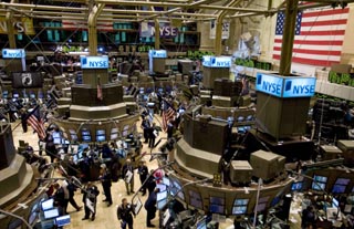 圖為交易員在美國紐約證券交易所內(nèi)忙碌。本報資料照片 | 今年美國股市在道瓊斯指數(shù)連破13000點、14000點整數(shù)關(guān)口的過程中盡顯“!睔猓矓(shù)次遭遇道指單個交易日暴跌數(shù)百點的重創(chuàng)。 從年初至12月21日,紐約股市三大股指均實現(xiàn)不同幅度的上漲,其中納斯達(dá)克指數(shù)漲幅最大,累計達(dá)到11.46%,道瓊斯指數(shù)和標(biāo)準(zhǔn)普爾指數(shù)漲幅分別為7.92%和4.66%。更令投資者欣慰的是,今年道指首度突破并站穩(wěn)13000點大關(guān),其后又兩度突破14000點,并于10月9日創(chuàng)出14164.53點的歷史最高收盤紀(jì)錄。 不過,今年紐約股市也遭受了“9·11”以來最大單日跌幅。2月27日,受新興市場暴跌等因素影響,紐約股市遭遇“黑色星期二”,道指盤中一度深跌546點,終盤跌幅仍達(dá)416.02點。 3月13日,次貸危機(jī)首次波及美國股市。當(dāng)天,全美第二大次級抵押貸款企業(yè)——新世紀(jì)金融公司因瀕臨破產(chǎn)被紐約證券交易所停牌,致使道指重挫242.66點。6月22日,道指再次出現(xiàn)超過180點的下挫,原因是有消息稱美國第五大投資銀行貝爾斯登公司旗下的兩個對沖基金出現(xiàn)巨額次貸投資損失。 7月19日,道指首度站上14000點整數(shù)關(guān)口。但在隨后一個月內(nèi),由于美國次貸危機(jī)愈演愈烈,不斷有抵押貸款公司停業(yè)、倒閉以及金融企業(yè)涉足抵押貸款業(yè)務(wù)敗績累累的消息公布,紐約股市跌聲一片。8月16日,由于投資者恐慌情緒,道指一度暴跌343點,至12455.92點。從14000點至此,道指一路下跌幾乎沒有遇到任何抵抗,每天動輒幾百點的跌幅使投資者驚慌失措,市場悲觀情緒蔓延。 8月17日是紐約股市下半年的一個轉(zhuǎn)折點。當(dāng)天美聯(lián)儲宣布將貼現(xiàn)率降低0.5個百分點,以幫助恢復(fù)金融市場穩(wěn)定。受這一利好消息影響,紐約股市當(dāng)天大幅反彈,道指上漲超過230點。由于發(fā)達(dá)國家央行紛紛介入金融市場,投資者信心得到鼓舞,紐約股市大漲小回一路攀升,并在10月9日創(chuàng)出歷史新高。但隨著花旗、美林等華爾街巨頭相繼公布虧損的財務(wù)報告,加上房地產(chǎn)持續(xù)不景氣,美國消費開支受到影響,從10月下旬開始紐約股市再次下探,金融類股票領(lǐng)跌。 高盛和美林證券預(yù)測,美國經(jīng)濟(jì)明年衰退的概率大約在30%到50%。但對于號稱經(jīng)濟(jì)“晴雨表”的股市,高盛和美林證券都認(rèn)為不會隨美國經(jīng)濟(jì)一道下滑。目前,房地產(chǎn)、信貸市場以及居高不下的油價是影響美國經(jīng)濟(jì)的主要問題,也是困擾美國股市的問題。不過,由于新興市場發(fā)展迅速,與之有商業(yè)往來的美國企業(yè)會從中受益。即使美國經(jīng)濟(jì)走緩,美國股市也不一定不好,因為道瓊斯指數(shù)和標(biāo)準(zhǔn)普爾500指數(shù)成分股中的很多企業(yè)都在新興市場有投資與合作。