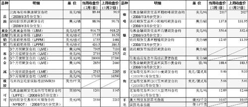 由于電力短缺,全球最大的鉑(白金)生產(chǎn)國(guó)——南非的金礦仍未恢復(fù)正常生產(chǎn),市場(chǎng)對(duì)其供給的擔(dān)憂加劇。當(dāng)周,紐約和倫敦市場(chǎng)的鉑期貨價(jià)均創(chuàng)歷史新高,分別達(dá)到每盎司1776.5美元和1764.5美元。此外,受美元匯率下跌影響,國(guó)際金價(jià)也一度創(chuàng)下歷史新高。 石油市場(chǎng)方面,由于投資者預(yù)計(jì)美聯(lián)儲(chǔ)將采取降息舉措且政府經(jīng)濟(jì)刺激方案可能使美國(guó)經(jīng)濟(jì)避免陷入衰退,當(dāng)周前三個(gè)交易日國(guó)際油價(jià)接連上漲。然而,1月31日和2月1日美國(guó)公布的不利數(shù)據(jù)卻打壓油價(jià)連續(xù)下行,2月1日紐約、倫敦兩地油價(jià)盤中一度下挫超過3美元,且最終分別收于88.96美元和89.44美元。