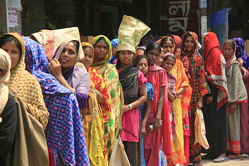 | 在孟加拉國(guó)首都達(dá)卡,人們?cè)谡_設(shè)的平價(jià)米店前排隊(duì)買米。新華社發(fā)(扎曼