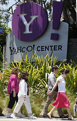 | 19日,人們經(jīng)過美國加利福尼亞州雅虎公司的辦公樓。微軟公司18日發(fā)表聲明說,它已向雅虎公司提出一項替代性交易方案,新方案并不涉及全盤收購雅虎。雅虎當天表示愿意考慮,雙方先前似已暗淡的合作前景重現(xiàn)轉(zhuǎn)機。新華社/路透 | 盡管美國信貸市場和整體經(jīng)濟尚未擺脫次貸危機陰霾,但華爾街的談判專家卻重新忙碌起來,大公司的并購消息接踵而至。 美國微軟公司18日發(fā)表聲明說,它正與雅虎就一個替代性交易方案進行磋商。雖然這一新方案并不涉及全盤收購雅虎,但微軟表示,保留未來重新考慮收購雅虎的可能。在此之前,美國惠普公司和哥倫比亞廣播公司也先后公布了并購消息;萜盏牟①弻ο笫请娮訑(shù)據(jù)系統(tǒng)公司(EDS),并購金額高達139億美元。而美國哥倫比亞廣播公司(CBS)則宣布,將出資18億美元收購網(wǎng)絡(luò)媒體CNET