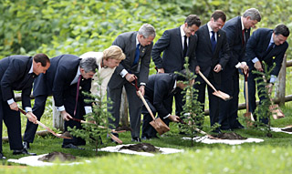 | 8日,意大利總理貝盧斯科尼、英國(guó)首相布朗、德國(guó)總理默克爾、美國(guó)總統(tǒng)布什、日本首相福田康夫、法國(guó)總統(tǒng)薩科齊、俄羅斯總統(tǒng)梅德韋杰夫、加拿大總理哈珀和歐盟委員會(huì)主席巴羅佐(從左至右)在植樹典禮上。當(dāng)天,在日本洞爺湖出席八國(guó)峰會(huì)的領(lǐng)導(dǎo)人在峰會(huì)主會(huì)場(chǎng)溫莎飯店參加了一個(gè)植樹典禮。新華社/路透 | 舉世關(guān)注的八國(guó)集團(tuán)首腦會(huì)議9日在日本洞爺湖閉幕。 這次八國(guó)集團(tuán)首腦會(huì)議包括四個(gè)主要會(huì)議,即美國(guó)、英國(guó)、法國(guó)、德國(guó)、意大利、加拿大、俄羅斯和日本八國(guó)首腦同阿爾及利亞、埃塞俄比亞、加納、尼日利亞、塞內(nèi)加爾、南非、坦桑尼亞七個(gè)非洲國(guó)家領(lǐng)導(dǎo)人舉行的對(duì)話會(huì)、八國(guó)首腦獨(dú)自舉行的工作會(huì)議、八國(guó)首腦同中國(guó)、巴西、印度、南非、墨西哥五個(gè)發(fā)展中國(guó)家領(lǐng)導(dǎo)人對(duì)話會(huì)以及主要經(jīng)濟(jì)大國(guó)能源和氣候變化會(huì)議。 在三天的會(huì)期內(nèi),與會(huì)者討論了氣候變化、世界經(jīng)濟(jì)、能源和糧食安全、貿(mào)易、金融體系發(fā)展、非洲發(fā)展以及國(guó)際安全領(lǐng)域的一些問題。盡管與會(huì)者就當(dāng)前世界面臨的一些主要問題達(dá)成了一定共識(shí),但并沒有取得多少突破。